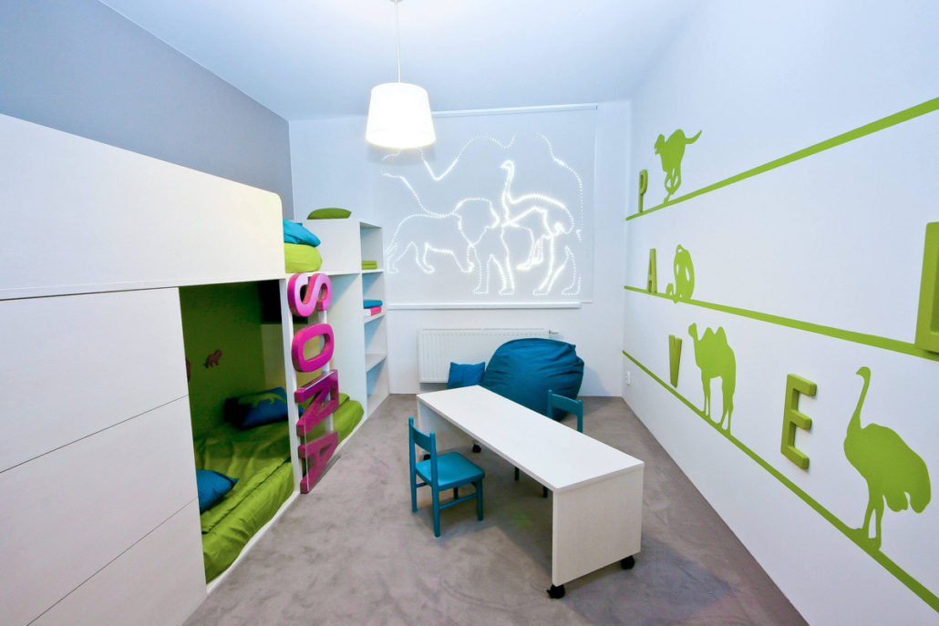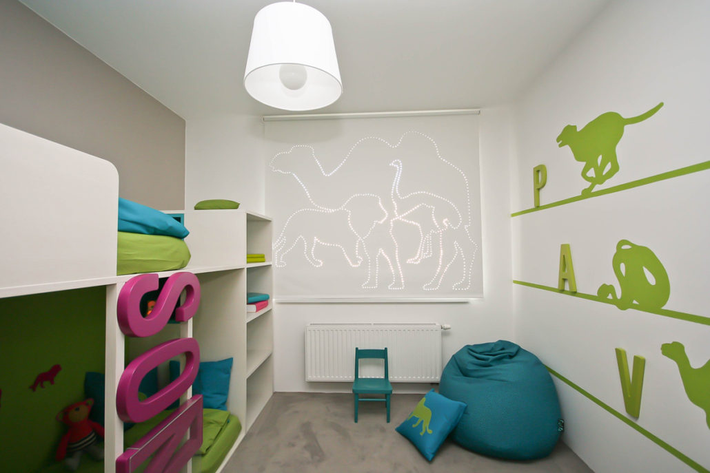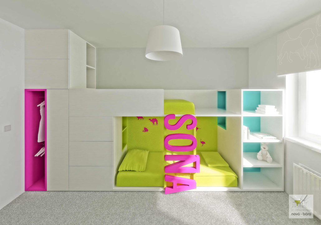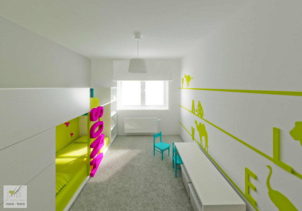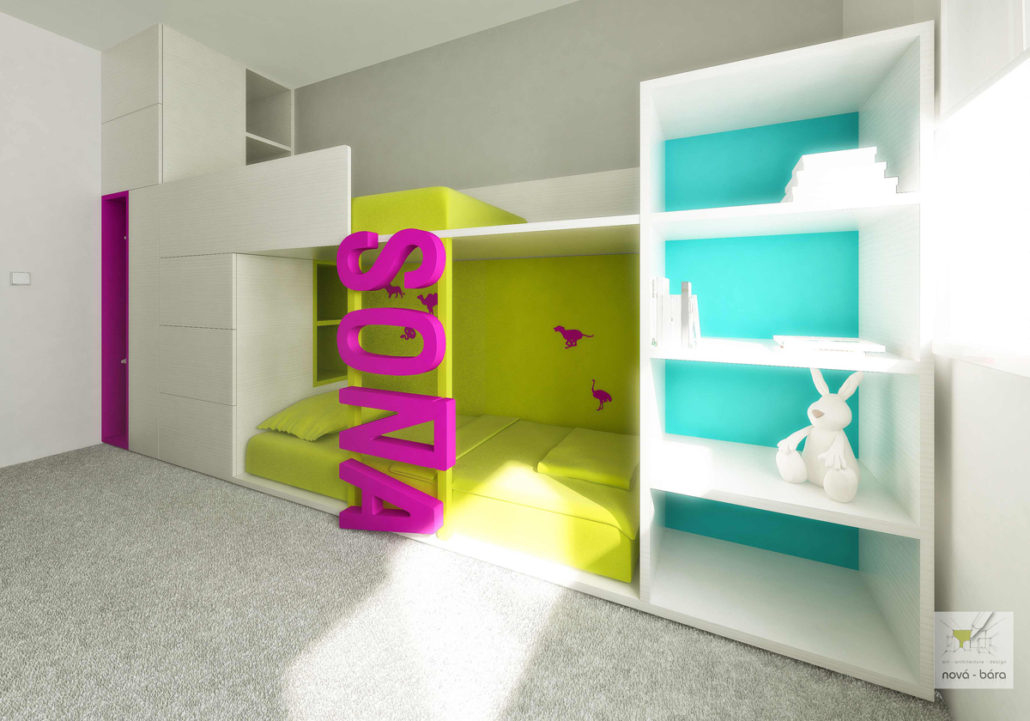 Realizace interieru do pořadu „Bydlení je hra“. Požadavek zákazníka byl dětský pokoj pro dvě děti, pokud možno bez ostrých hran.